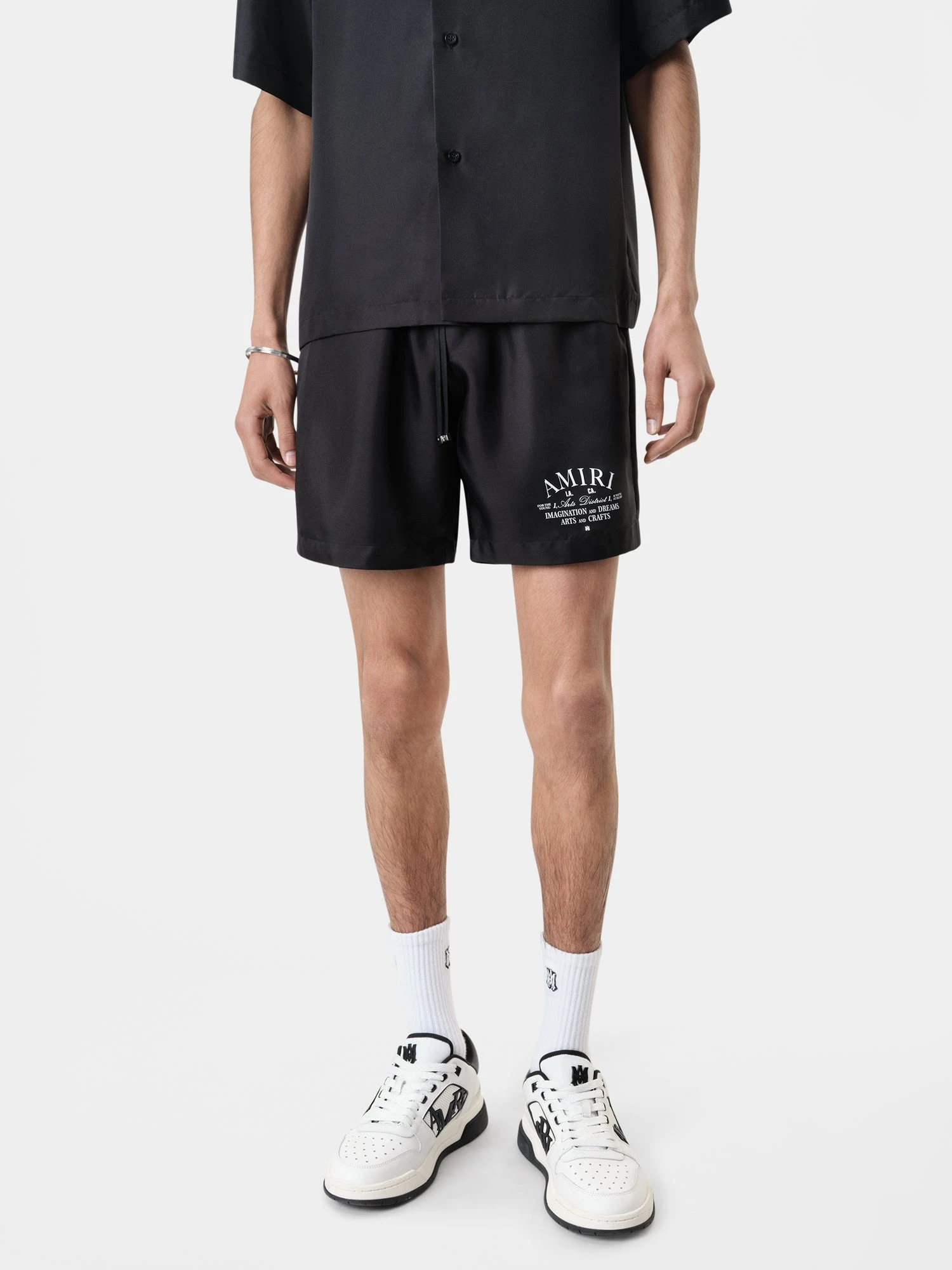House iconography honors the creative spirit of Los Angeles’ Arts District and AMIRI’s roots in artisanal craft. The Arts District Shorts in silk twill are illustrated with the Arts District graphic and finished with an elastic waist.