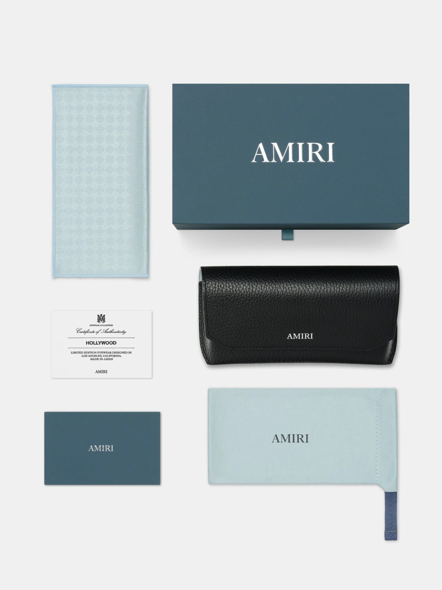 Pre-Fall 2025 introduces a new eyewear collection set against the backdrop of Los Angeles, where Hollywood mainstays become legendary icons. The Hollywood Sunglasses are a time-honored rectangular silhouette crafted with Zeiss lenses, custom etched internal wire cores, seven-barrel hinges, and raised gold-plated MA Quad motif at the temples.