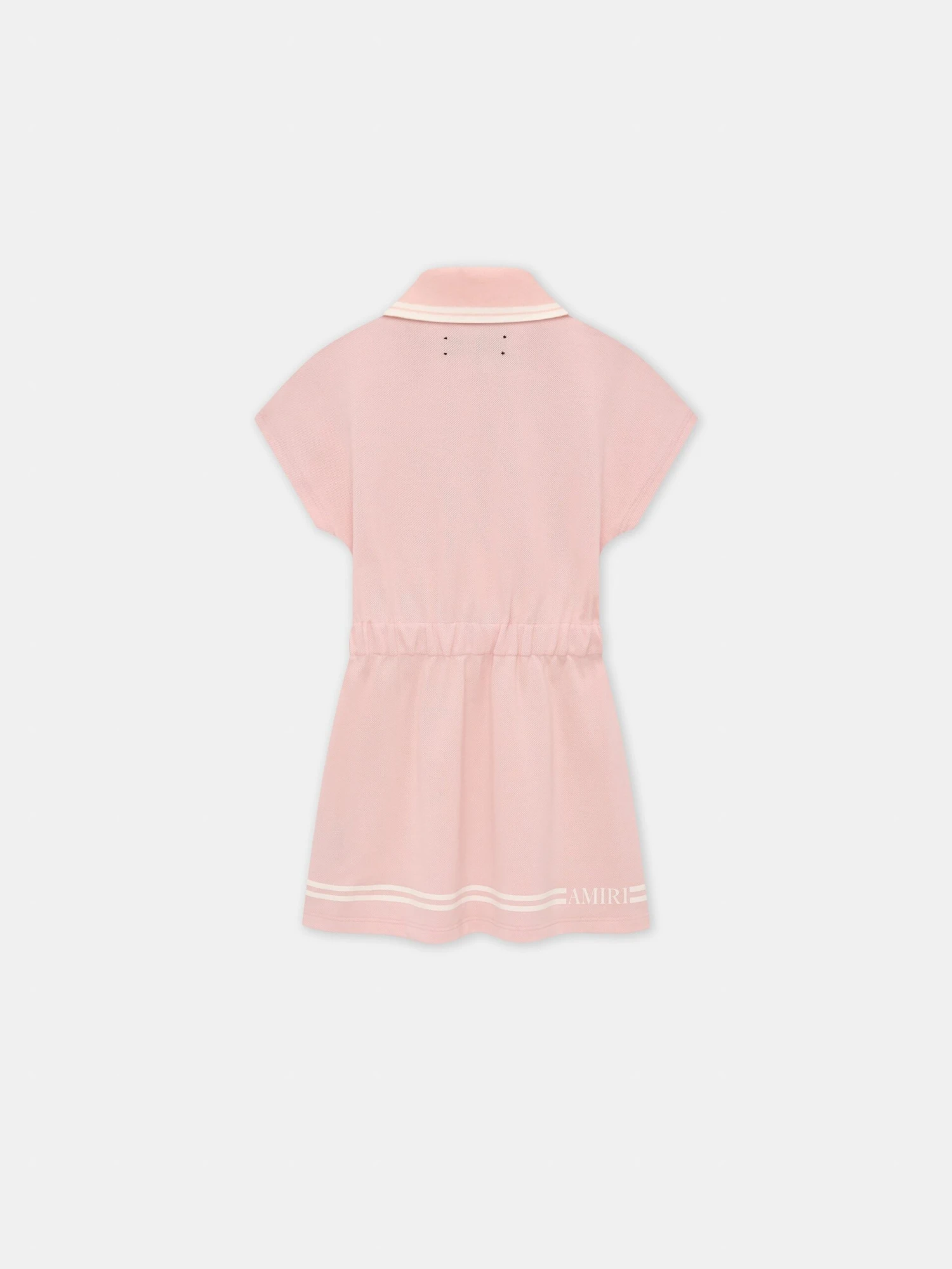 House signature graphics illustrate kids’ dresses in seasonal colors for Pre-Fall 2025. The MA Polo Dress in cotton is designed with three-summary closure, an elastic waist, and contrast tipping at the collar.