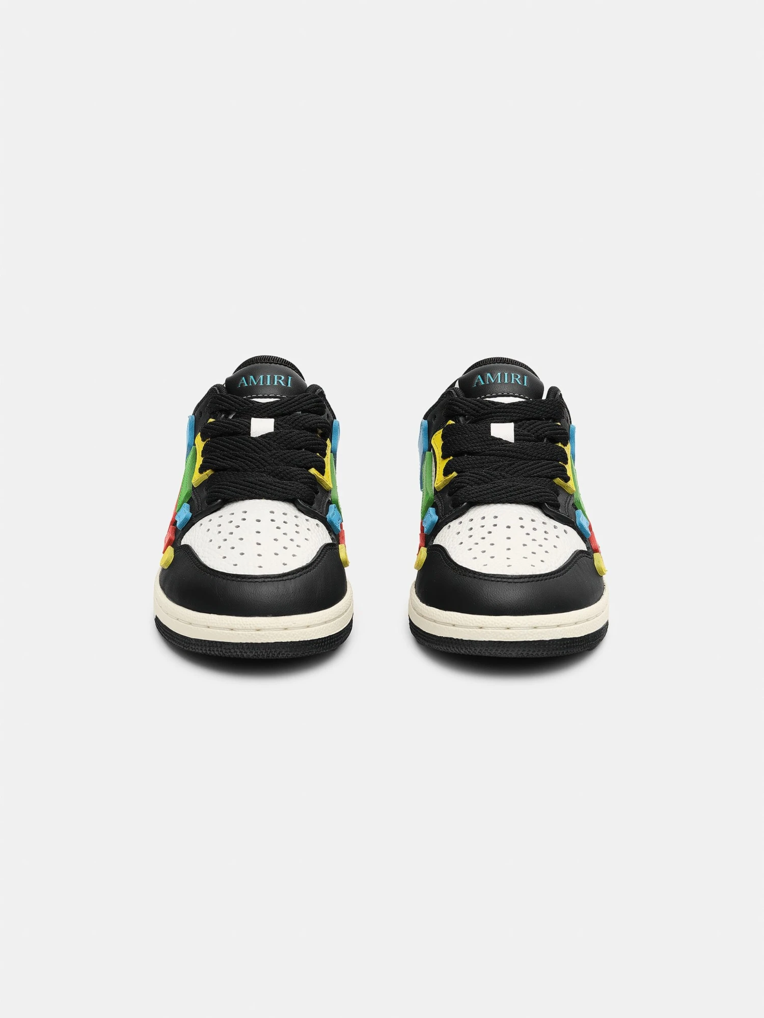 Pre-Fall 2025 kids’ footwear recasts the house’s iconic Skel Top silhouette in a new multicolored rendition. The Skel Top Low is crafted on a rubber sole with a paneled leather upper featuring the house’s signature leather bone appliqués.