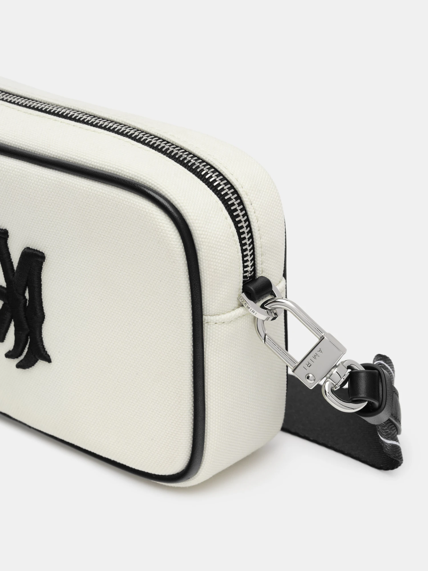 Pre-Fall 2024 continues to explore house signature motifs in novel interpretations. The MA Canvas Camera Case features MA icon contrast embroidery and is finished with an adjustable leather strap with custom hardware.