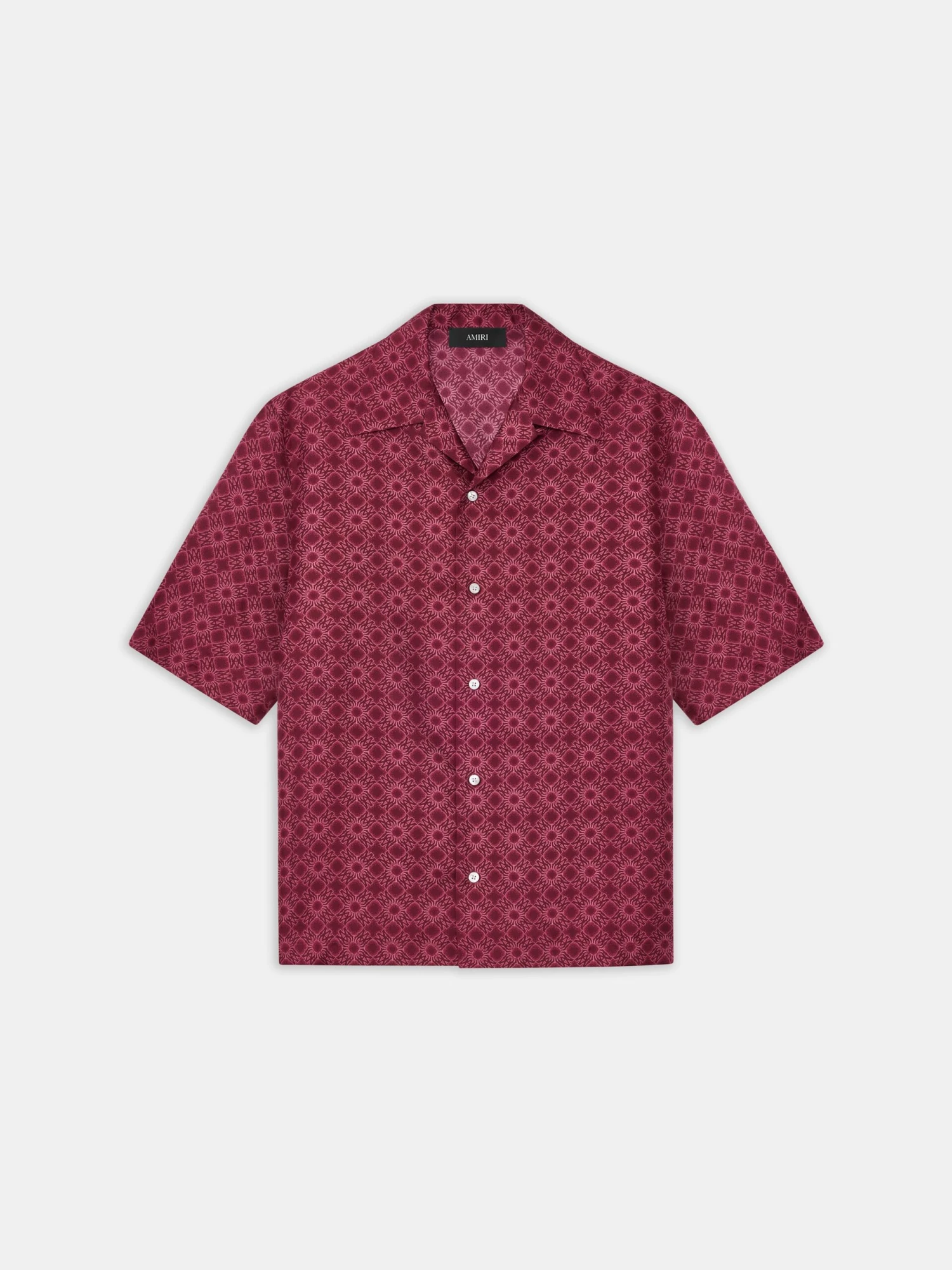 Autumn-Winter 2025 introduces new renditions of the MA Quad monogram, a timeless house signature. The MA Quad Bowling Shirt in fluid silk is finished with a notched collar and summary-down closure.