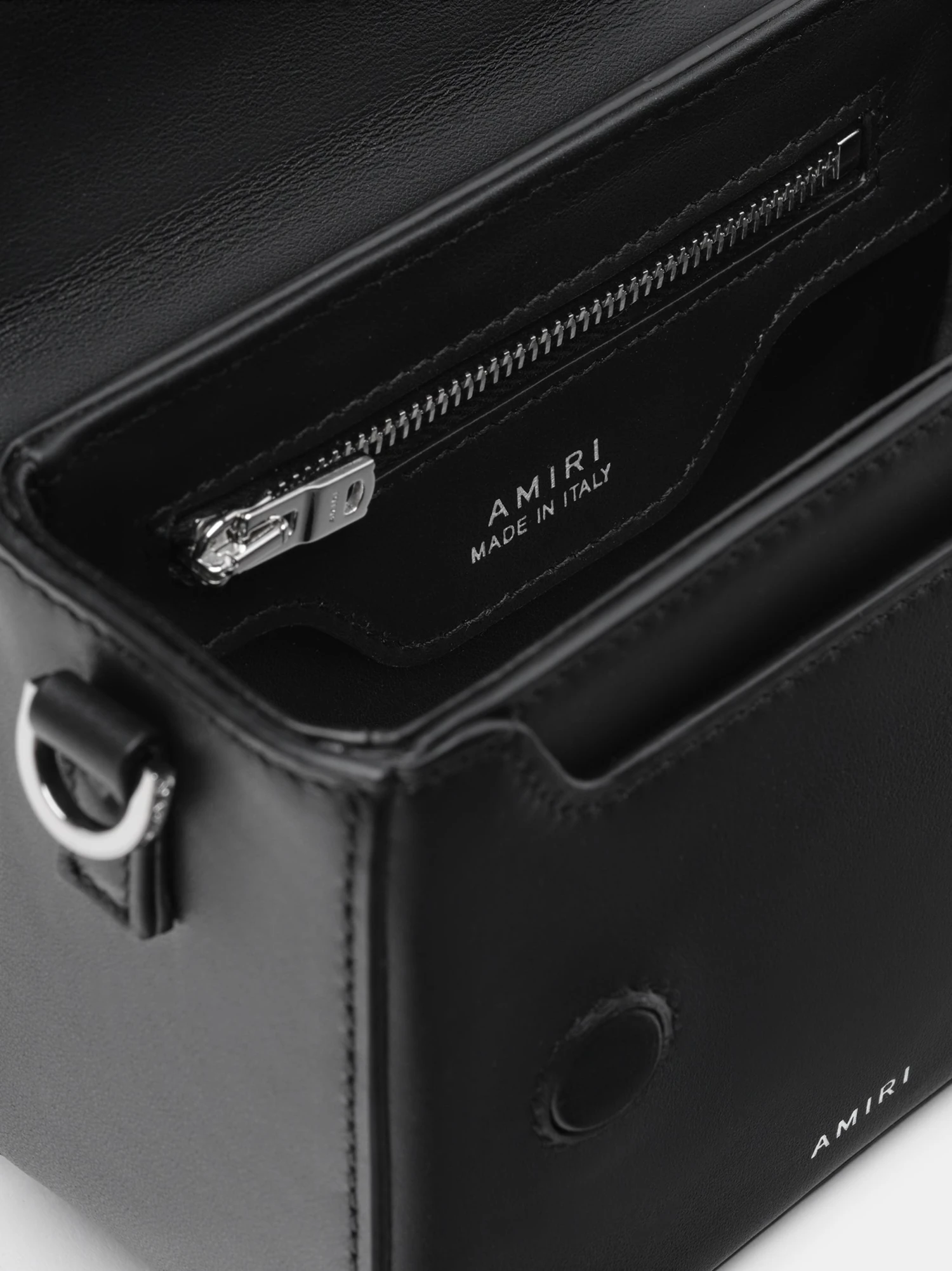 An instantly recognizable house icon, the Micro MA Bag is ideal for carrying small essentials for daytime or evening excursions. The Micro MA Bag is crafted from nappa leather with tied AMIRI bandana accents, a top handle and a detachable leather shoulder strap.