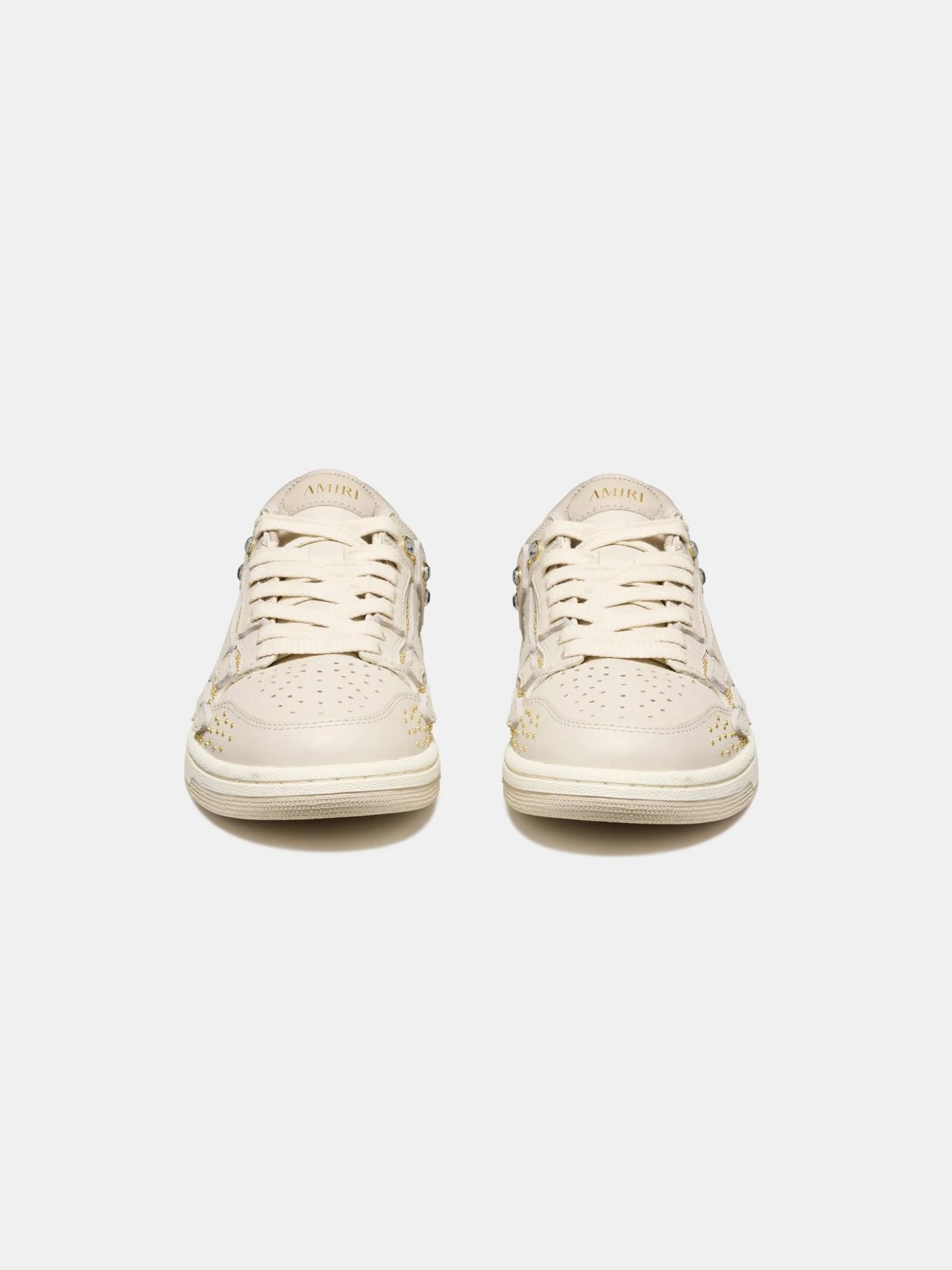 A constellation of studs and luminous crystals define the house’s iconic Skel Top silhouette for Autumn-Winter 2025. The Crystal Studded Skel Top Low is crafted on a two-tone rubber sole with an upper paneled with crystal-embellished and studded leather and illustrated with suede bone appliqués.