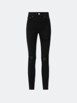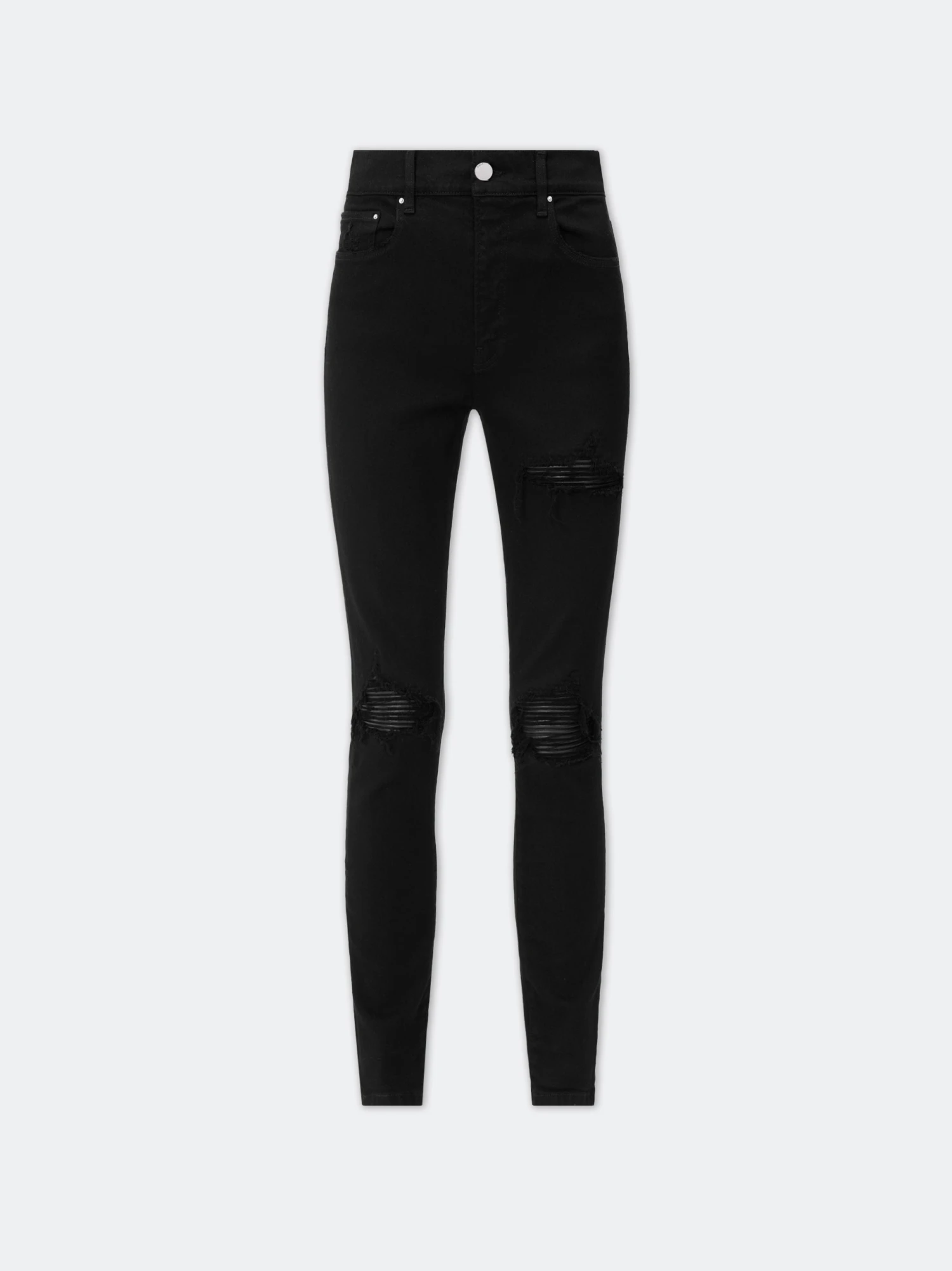 Denim becomes a canvas for intricate fabrication processes that embody the house’s spirit of contemporary innovation and craft. The MX1 in Italian stretch denim is hand-distressed and repaired with pleated leather and finished with classic five-pocket detailing.