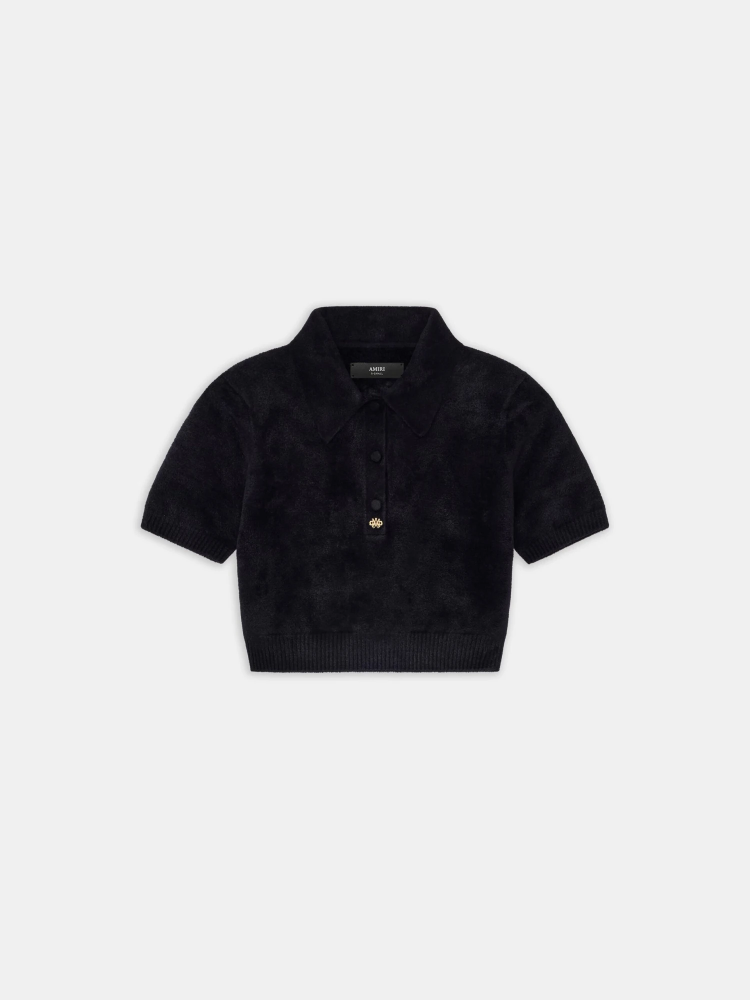 For Autumn-Winter 2025, streamlined silhouettes are elevated in plush velvet. The Velvet Polo is designed in a cropped fit and finished with three-summary closure, fine rib accents, and custom MA hardware.